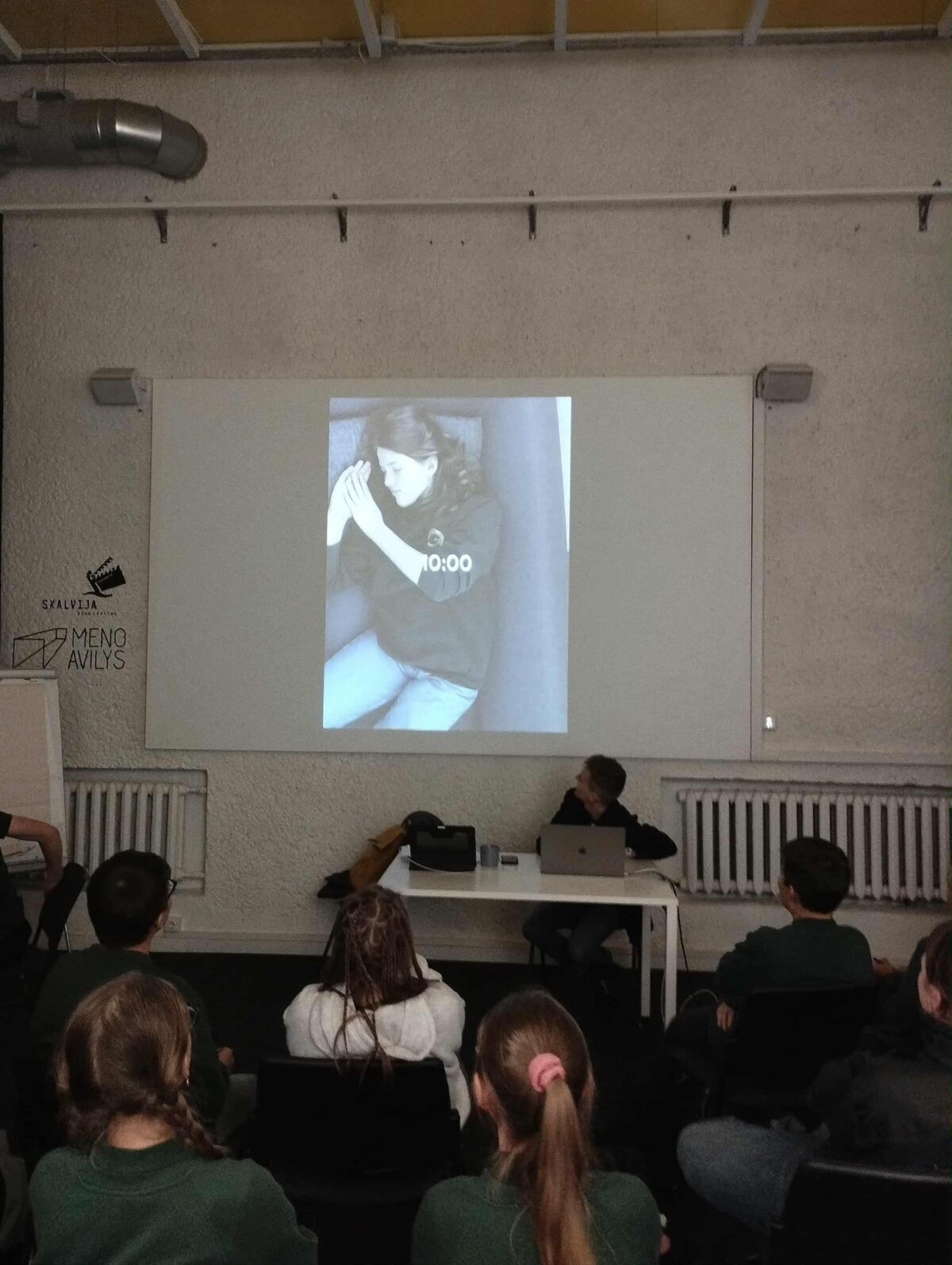 Spalio 20 d. 7a klasė vyko į Skalvijos kino teatrą ir dalyvavo integruotoje pamokoje, kurios metu plėtė žinias apie reklamų kūrimą. Išklausę teorinę dalį, pasiskirstę komandomis, mokiniai kūrė video reklamas. Sumontavę vaizdo įrašus, pristatė savo darbus kitiems mokiniams. Buvo daug juoko, teigiamų emocijų. Vaikai taip pat praplėtė savo žinias apie interneto panaudojimo galimybes.