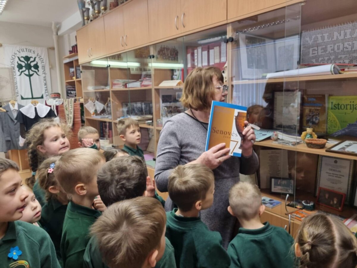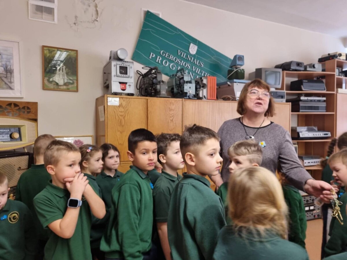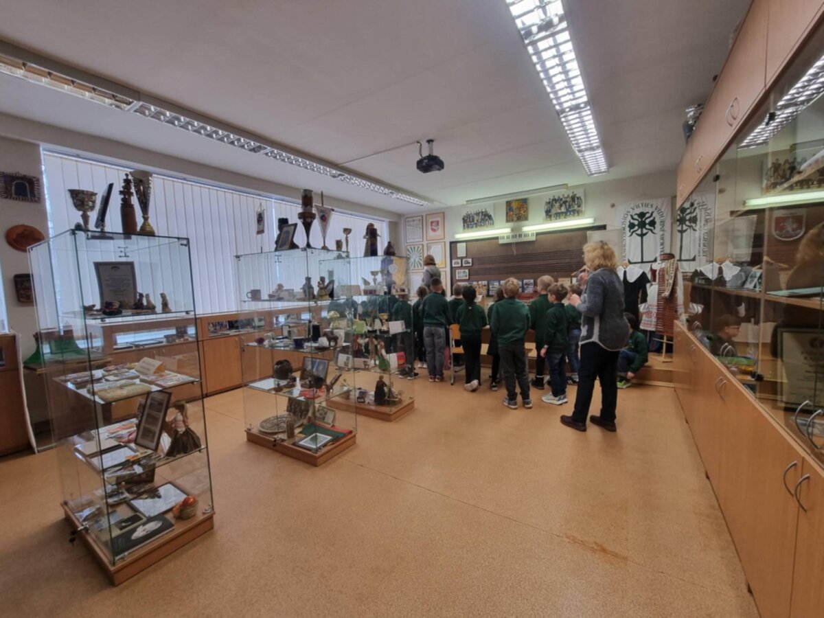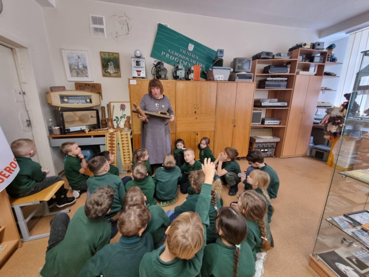 Mokiniai smalsiai apžiūrėjo muziejaus eksponatus, susipažino su senaisiais mokyklos daiktais ir nuotraukomis. Edukacijos metu jie sužinojo apie mokyklos istoriją, tradicijas bei įdomius faktus iš praeities.