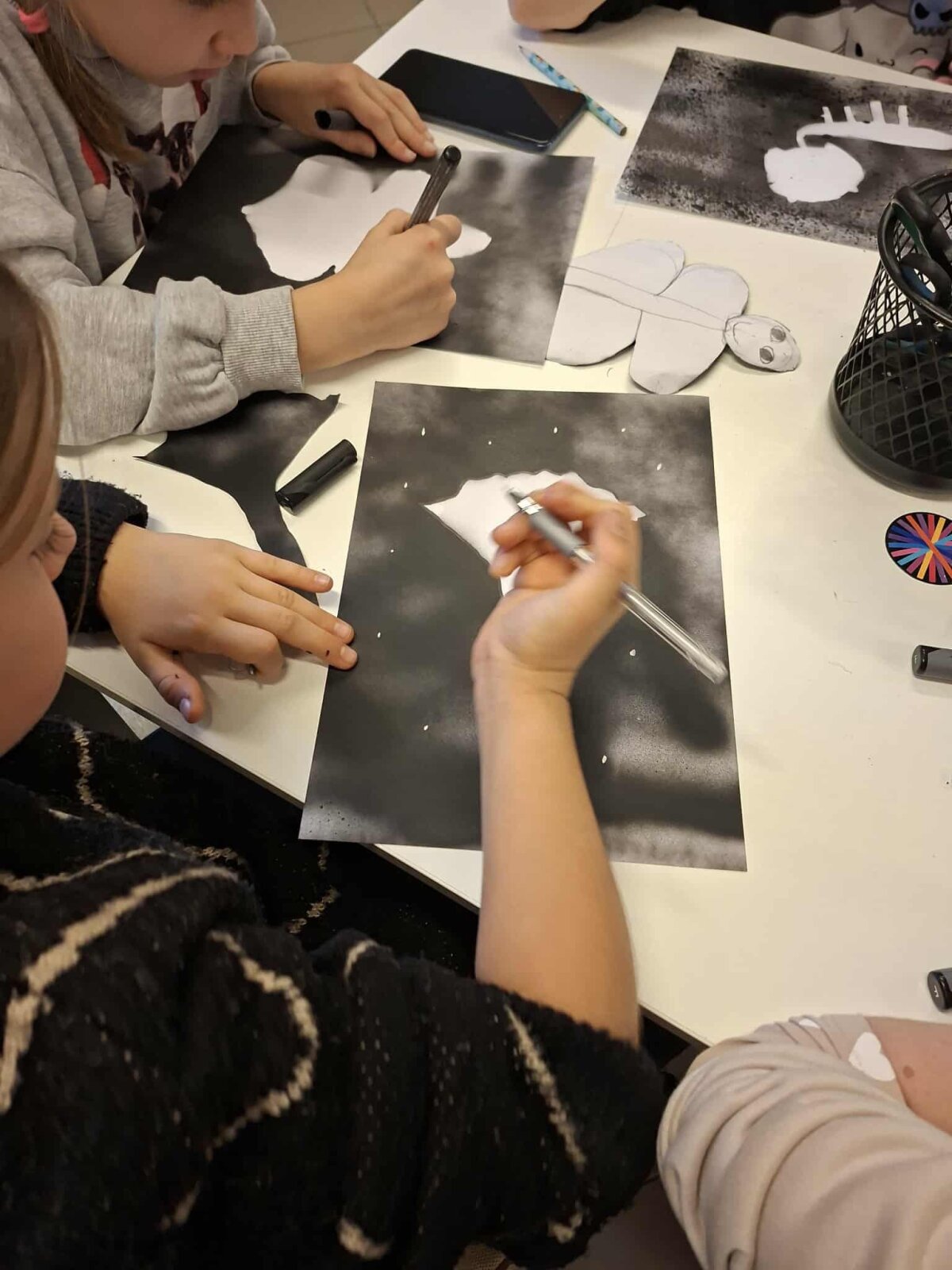 Edukatorė įdomiai papasakojo apie kūrybos procesą, o mokiniai susidomėję klausėsi ir kantriai dirbo. Vaikai džiaugėsi puikiais savo darbų rezultatais.