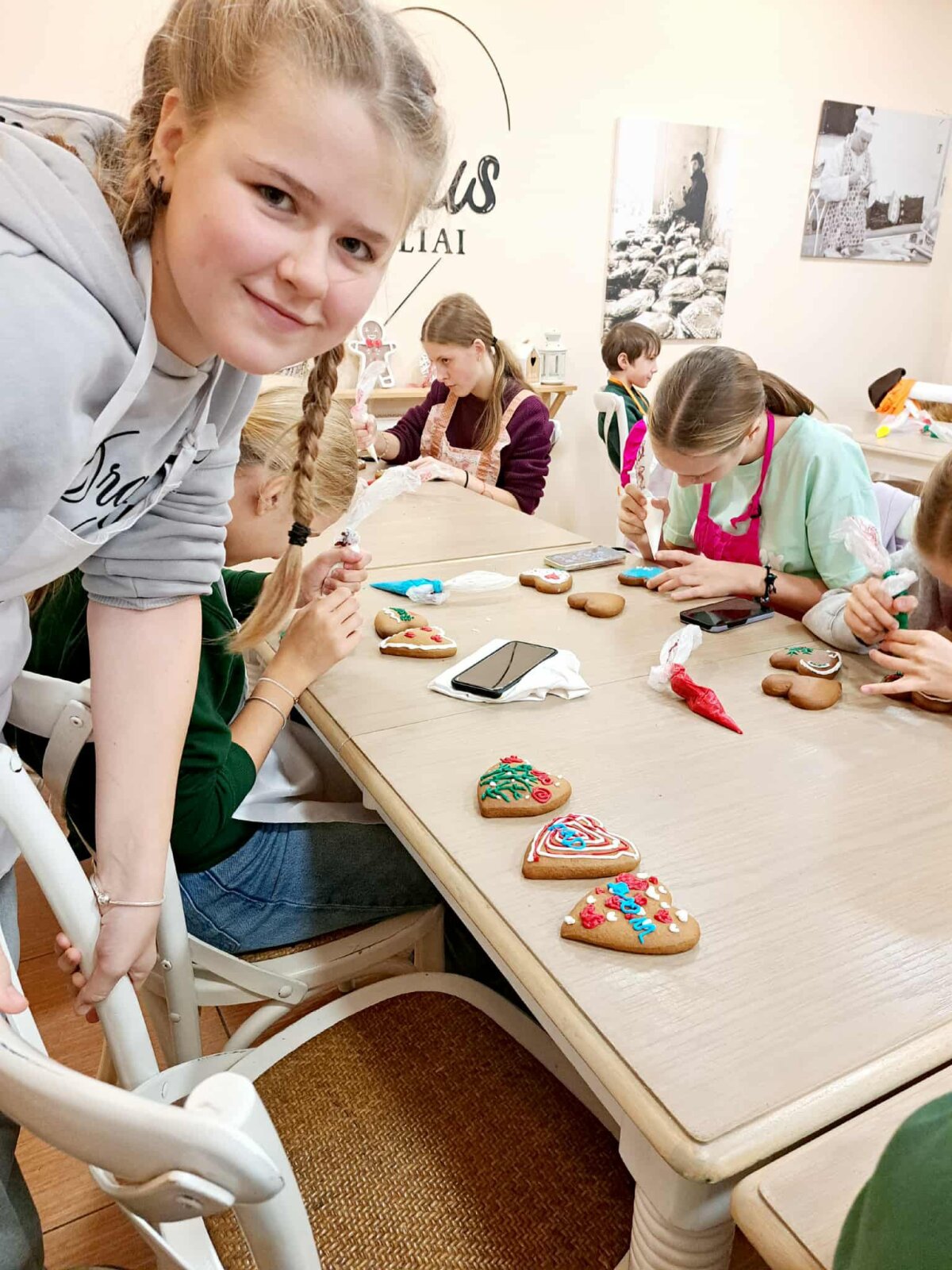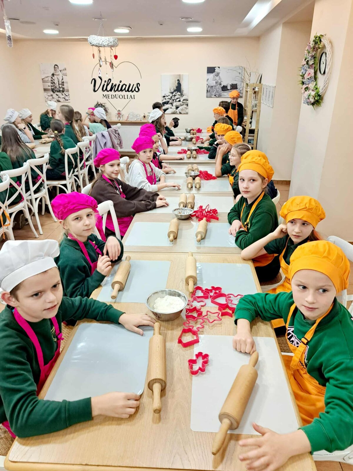 Išvykos metu mokiniai dalyvavo kvapnioje ir kūrybiškoje meduolių gaminimo edukacijoje: sužinojo, kaip gimsta tradiciniai lietuviški meduoliai, kokių prieskonių ir tešlos paslapčių reikia tobulam skoniui, patys minkė, lipdė ir dekoravo savo kūrinius. Kūrybinė atmosfera, jaukus kvapas ir šventiškas artėjančios žiemos jausmas lydėjo visą užsiėmimą, o mokiniai namo grįžo ne tik su savo pagamintais meduoliais, bet ir su puikiomis emocijomis.