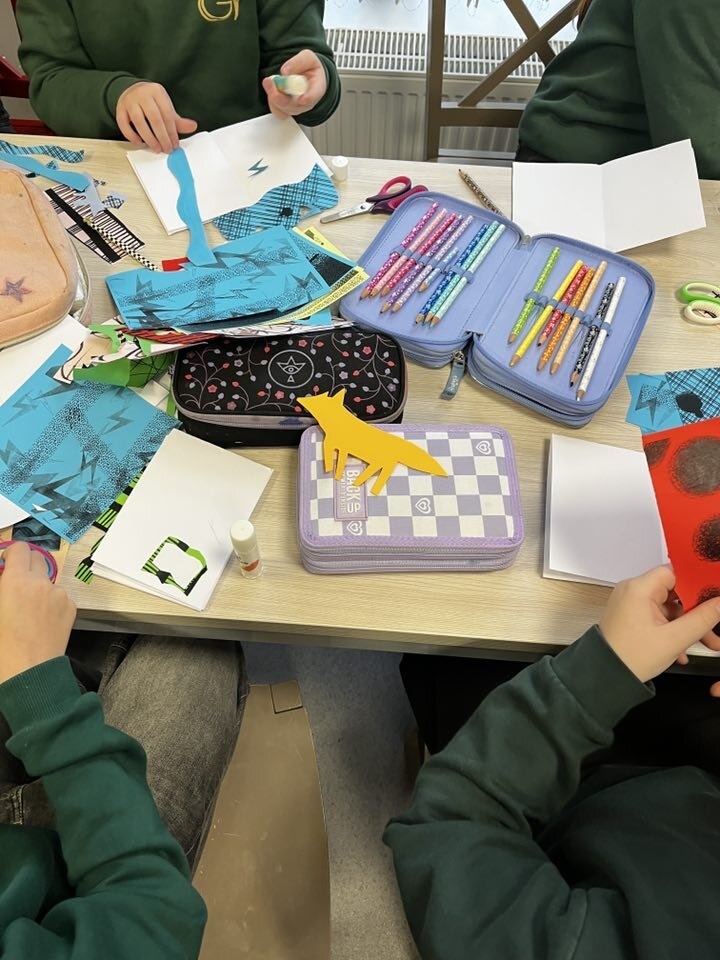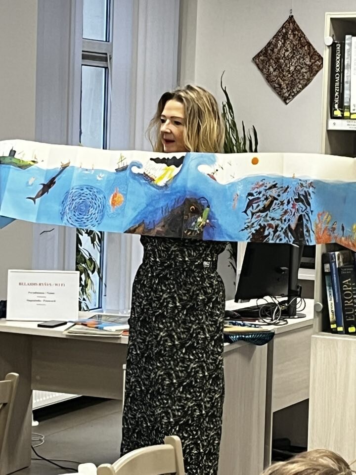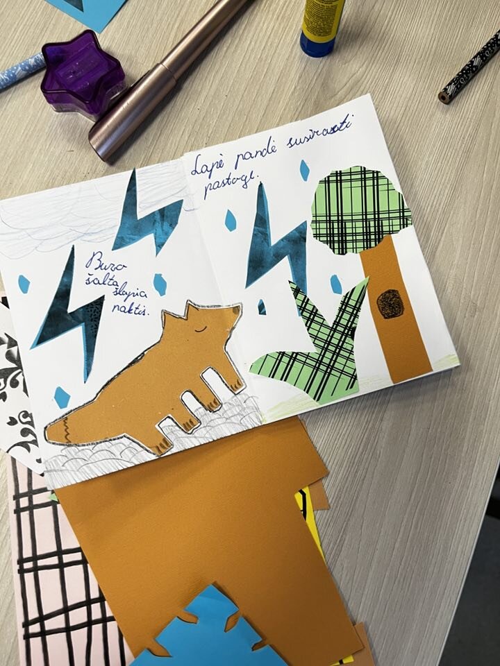 Oras - ne kalėdinis, lietus vidury gruodžio, o 3a klasės mokiniai su mokytoja Brigita ir progimnazijos bibliotekininke Danute vyko į susitikimą su mylima vaikų knygų autore Aušra Kiudulaite. Taip linksma, spalvota ir kūrybiška bibliotekoje seniai bebuvo! Mokiniai kūrė ir iliustravo savo pačių sukurtas tyliąsias knygas (knyga be teksto)! Kūrybos eigą ir rezultatus galite pamatyti nuotraukose.