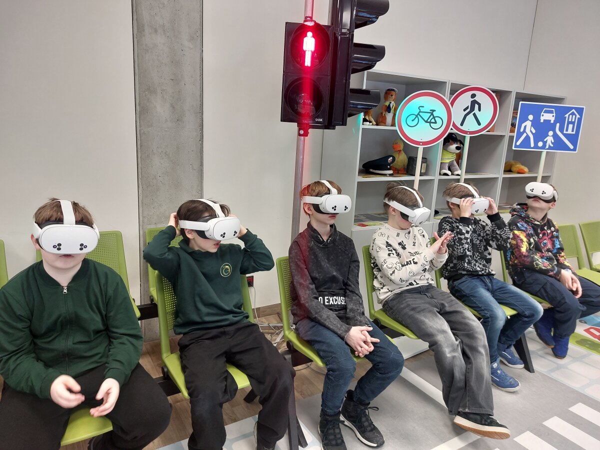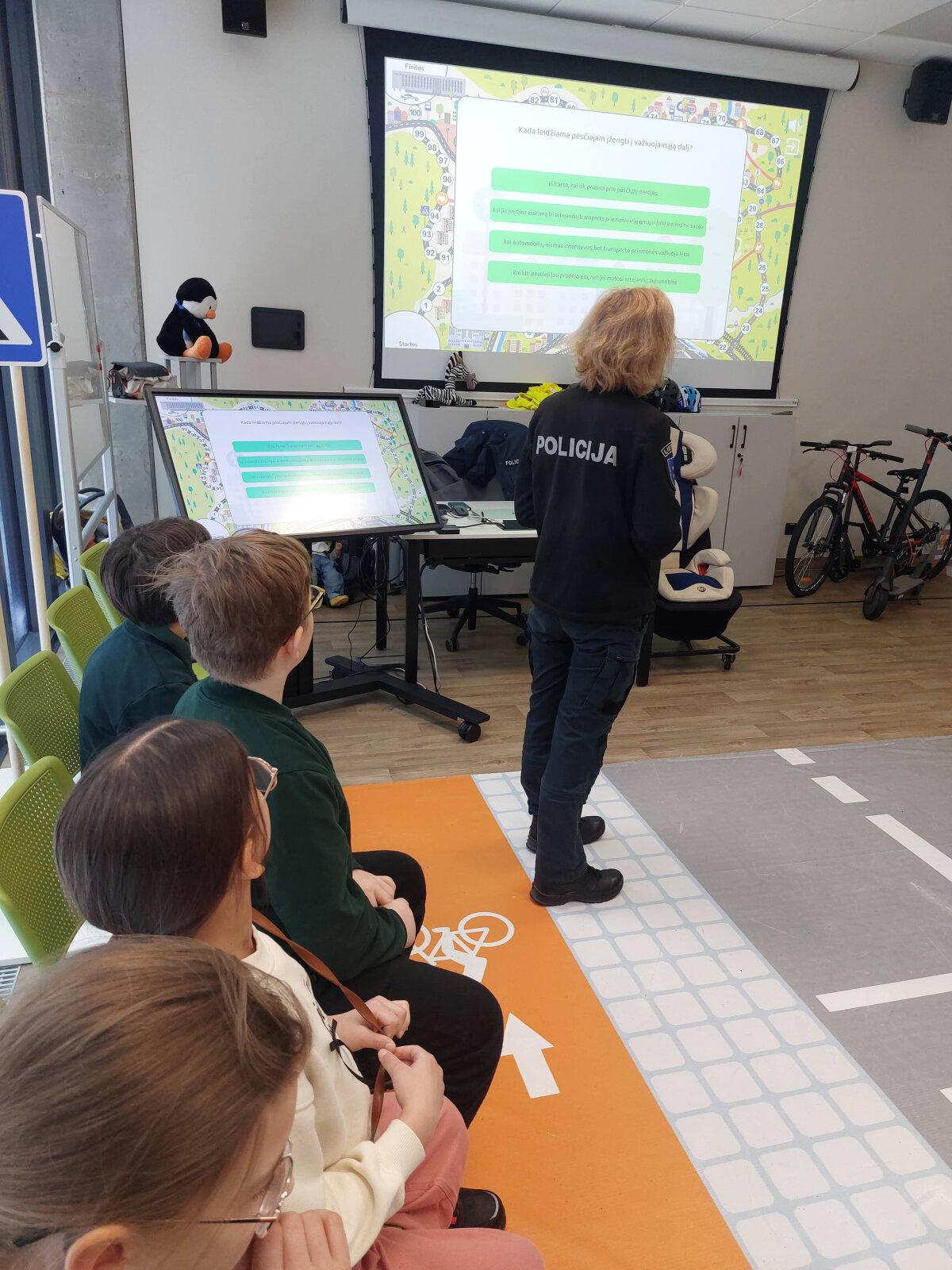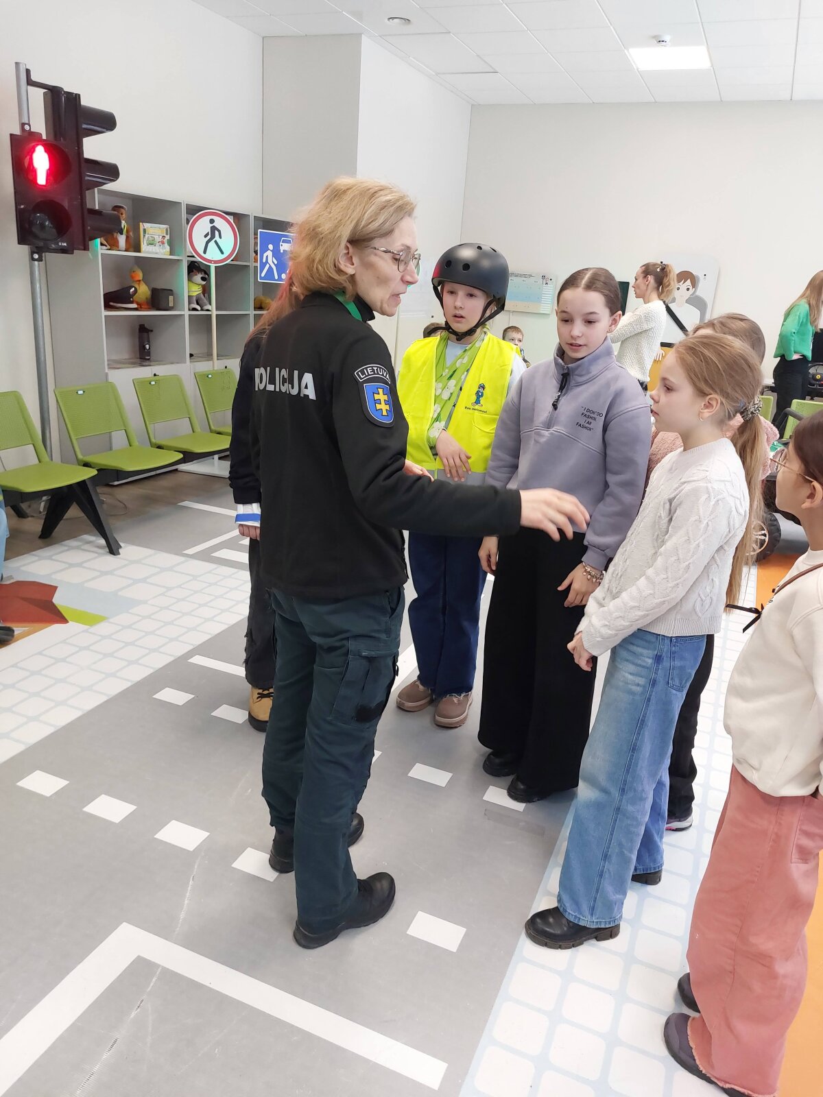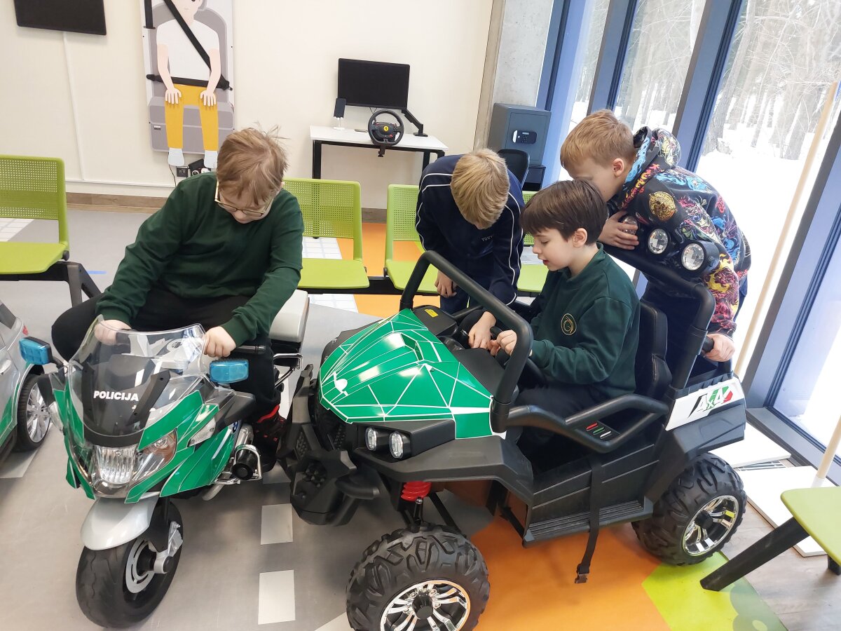 Vasario 26d. 4b klasės mokiniai su mokytoja Aurelija Kunigėliene lankėsi saugaus eismo klasėje Vilniaus apskrities vyriausiame policijos komisariate. Mokiniai susipažino su Kelių eismo taisyklėmis, mokėsi įžvelgti eismo aplinkoje tykančius pavojus, virtualioje eismo aplinkoje atliko praktines užduotis.