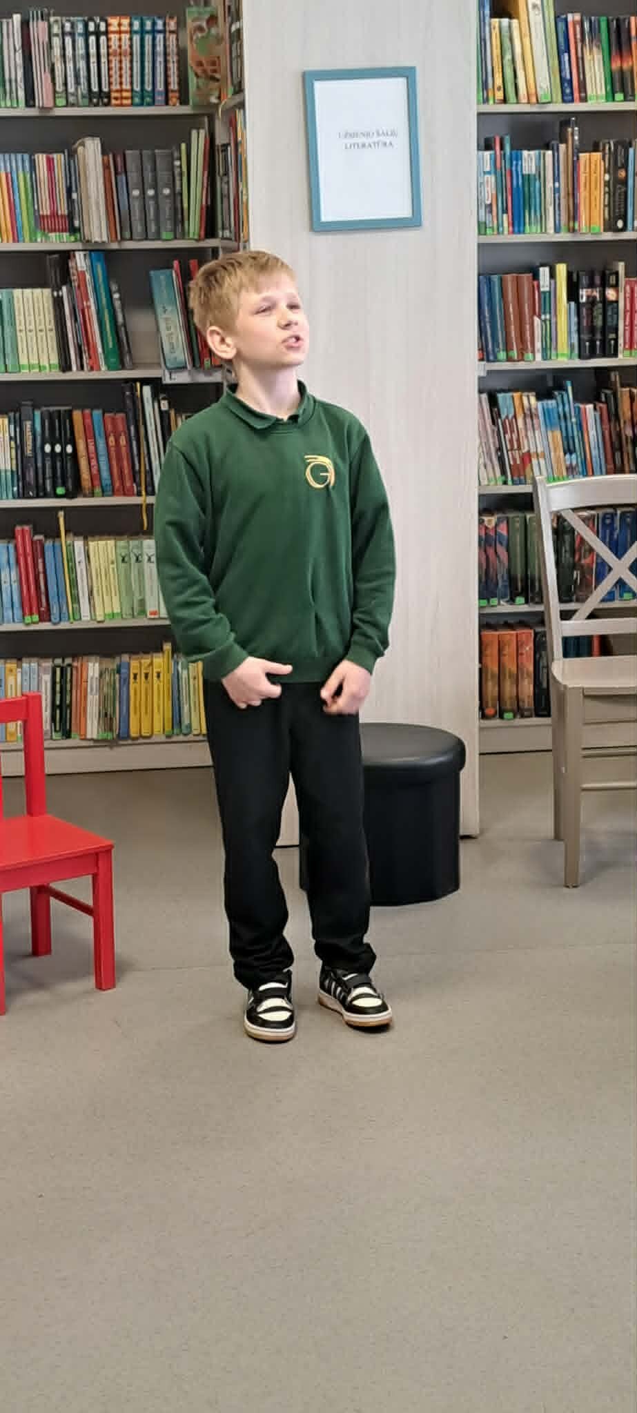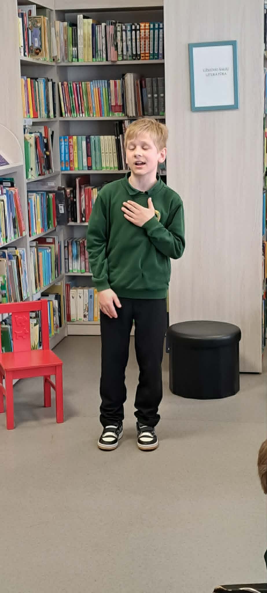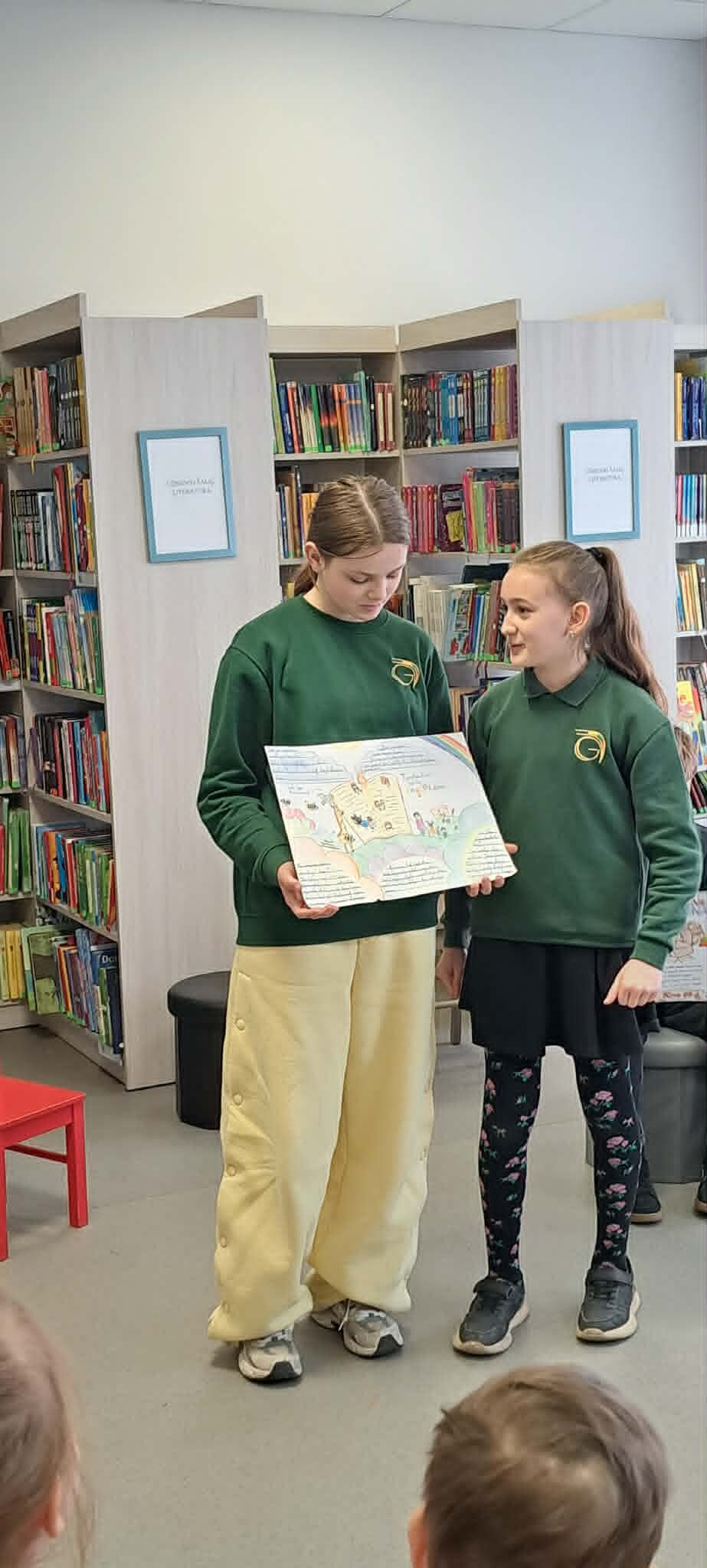 Gražus eilėraštis, nuostabi melodija, įspūdingi pristatymai, nuoširdūs klausytojai! Visa tai nutiko šiandieną Gerosios Vilties bibliotekoje. Penktų klasių mokinai, progimnazijos bibliotekinikė Danutė ir lietuvių kalbos mokytoja Jolita dalyvavo renginyje-rytmetyje „Kalba - knyga - skaitymas“. Renginio klausėsi Vilniaus lopšelio - darželio Viltenė „Aitvariukų“ grupė.