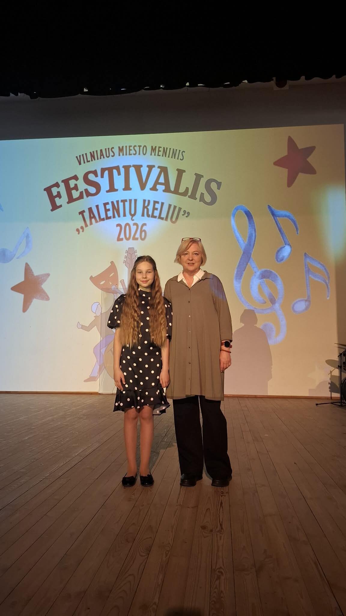 3b klasės mokinė Milda ir muzikos mokytoja Zita Drukteinienė dalyvavo Grigiškių „Šviesos“ gimnazijoje vykusiame festivalyje „Talentų keliu 2026“.