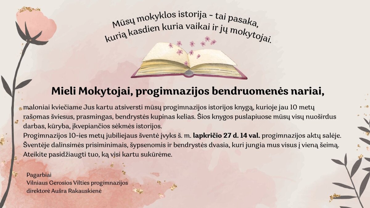 Kvietimas į progimnazijos 10 metų jubiliejų