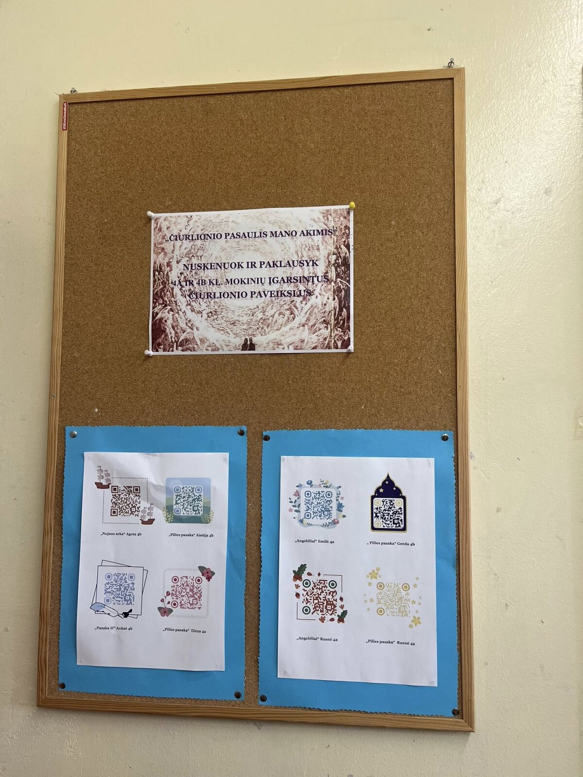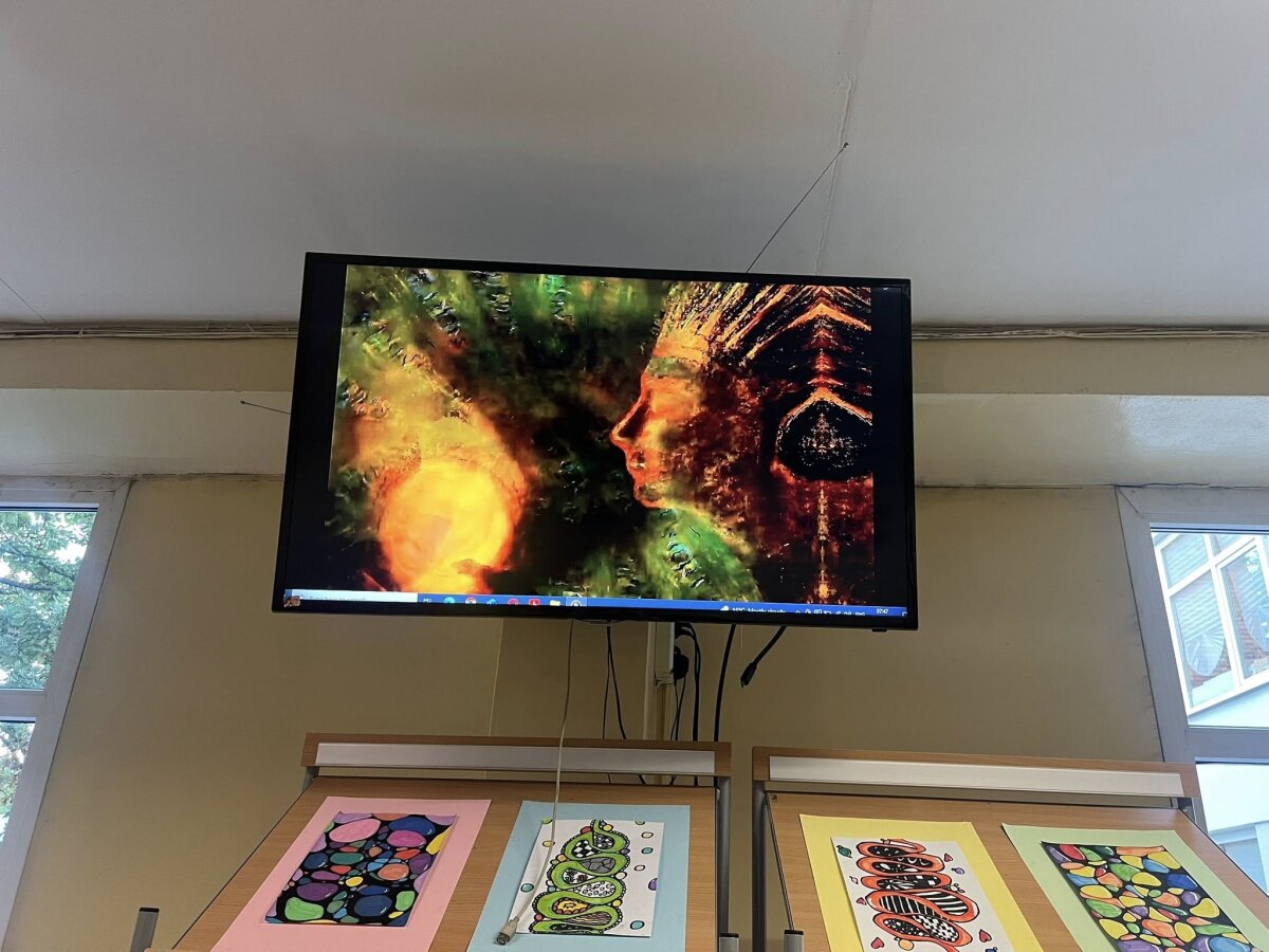 - Per pertraukas mokyklos fojė skambėjo M. K. Čiurlionio muzika, ekrane buvo rodomi animuoti jo paveikslai.