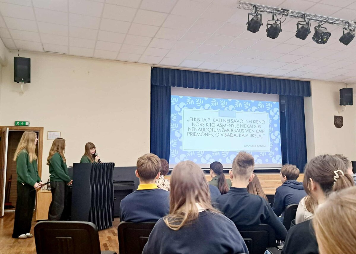 Pranešimo metu mokinės aptarė, kokie klausimai padeda žmogui įsivertinti savo pakantumą, suprasti kitų žmonių skirtumus ir ugdyti empatiją. Jos akcentavo, jog tolerancija prasideda nuo gebėjimo kelti sau svarbius klausimus: Kaip reaguoju į kitoniškumą? Ar gerbiu kitų nuomonę? Kodėl neleistina menkinti kitokio? Kodėl nereikia bijoti atsiprašyti? Kaip galiu prisidėti prie draugiškesnės aplinkos kūrimo?