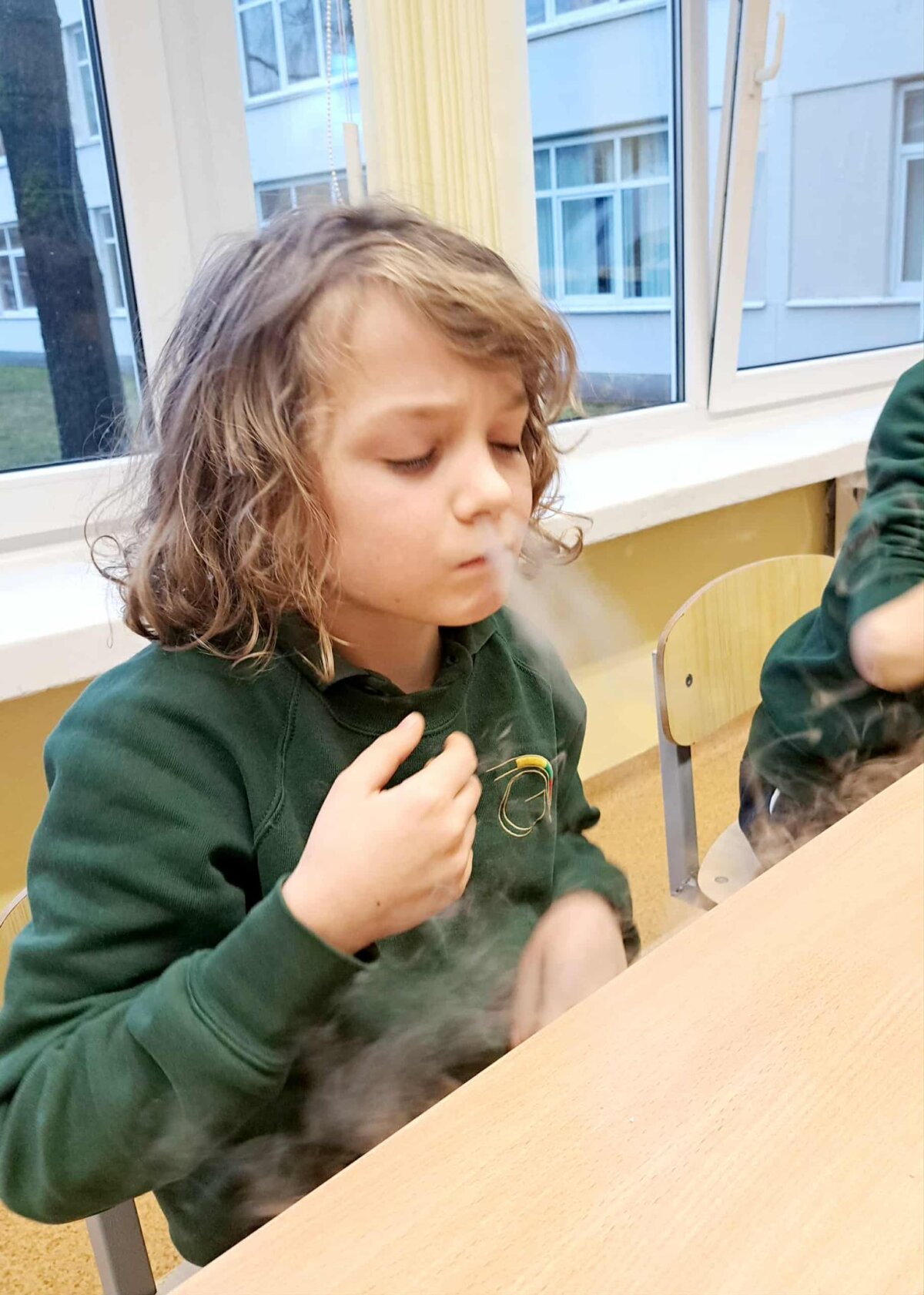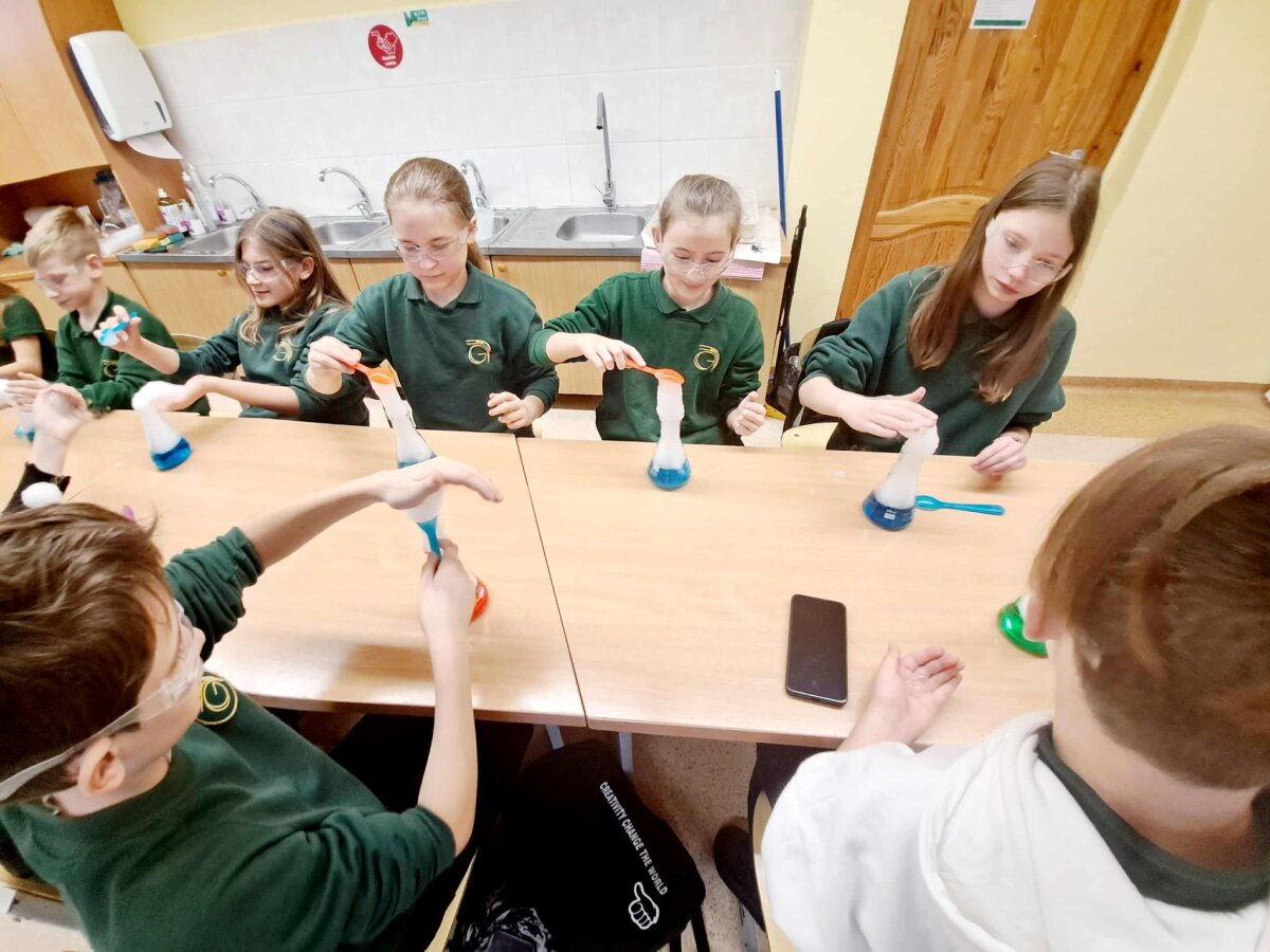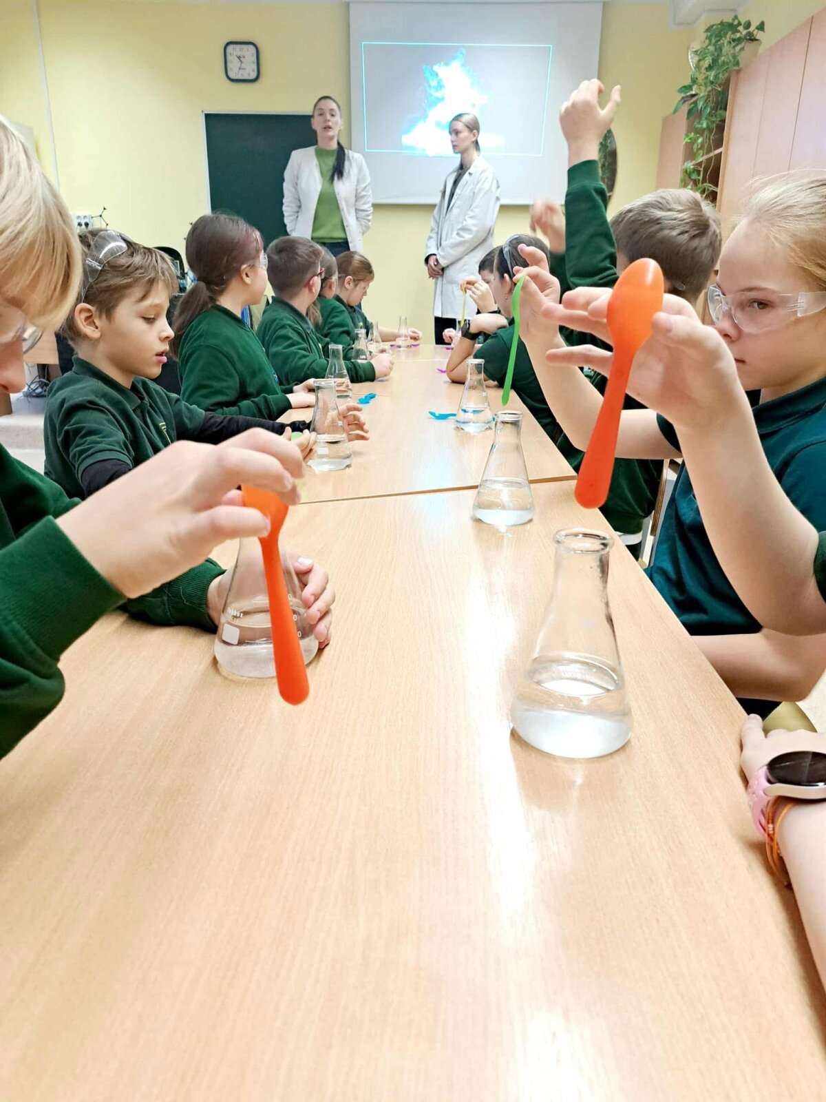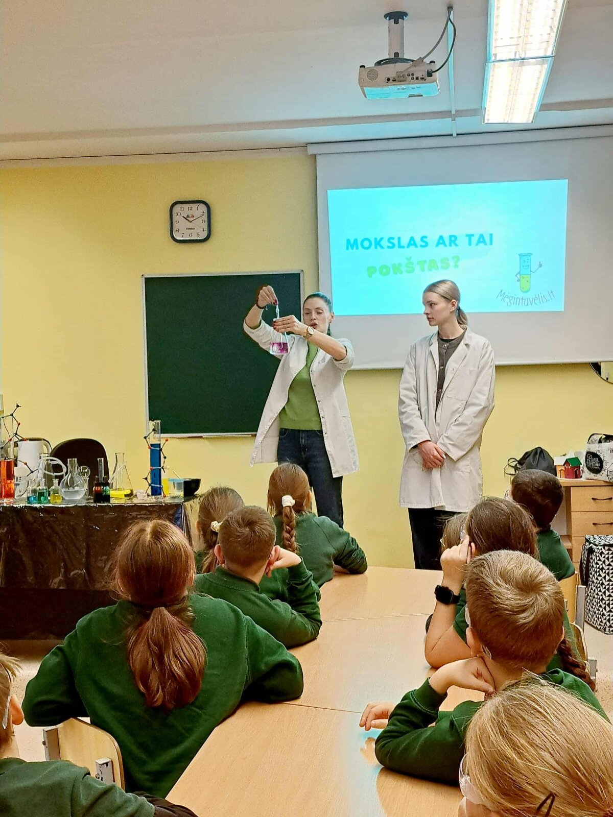 3–4 klasių mokiniai dalyvavo edukacijoje „Mokslas ar tai pokštas?“, kurios metu smalsiai tyrinėjo neįprastus reiškinius, stebėjosi netikėtais pokyčiais ir patys atliko įvairius eksperimentus.