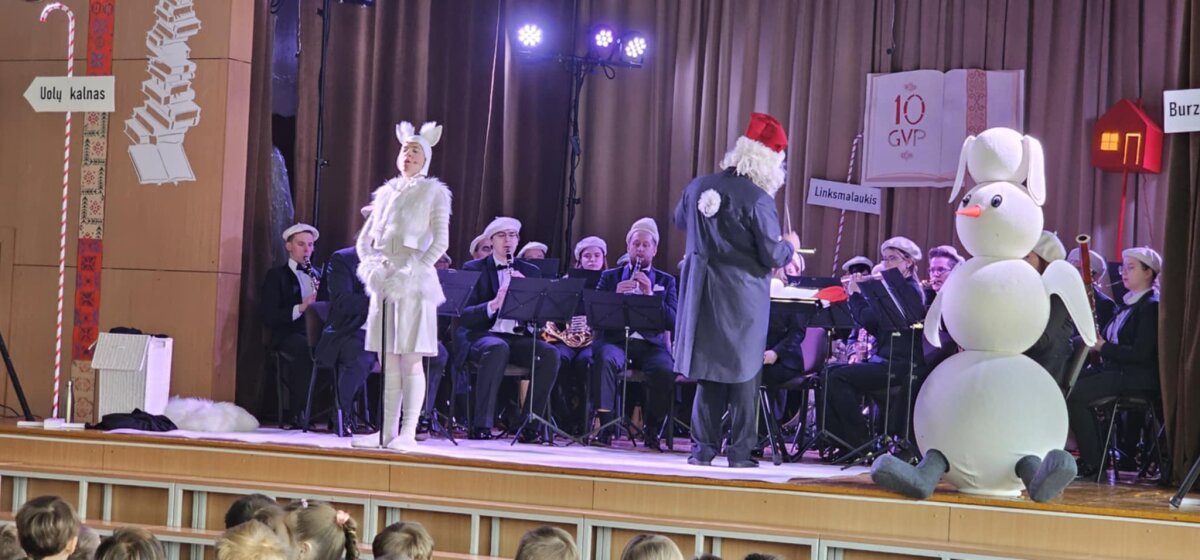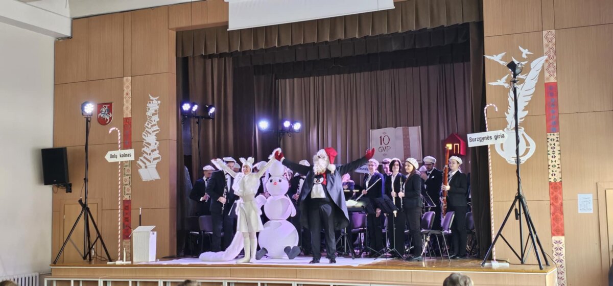 1–8 klasių mokiniai buvo pradžiuginti išskirtiniais meniniais pasirodymais – tai progimnazijos dovana vaikams. Sausio 15 d. 1–4 klasių mokiniams buvo surengtas edukacinis „Trimito“ renginys „Kalėdžiaus pagrobimas“, o sausio 23 d. 5–8 klasių mokiniai buvo pakviesti į muzikinį spektaklį „Skambantys skaičiai“. Abiejuose renginiuose skambėjo žymūs muzikiniai kūriniai, atliekami Lietuvos simfoninio pučiamųjų orkestro.