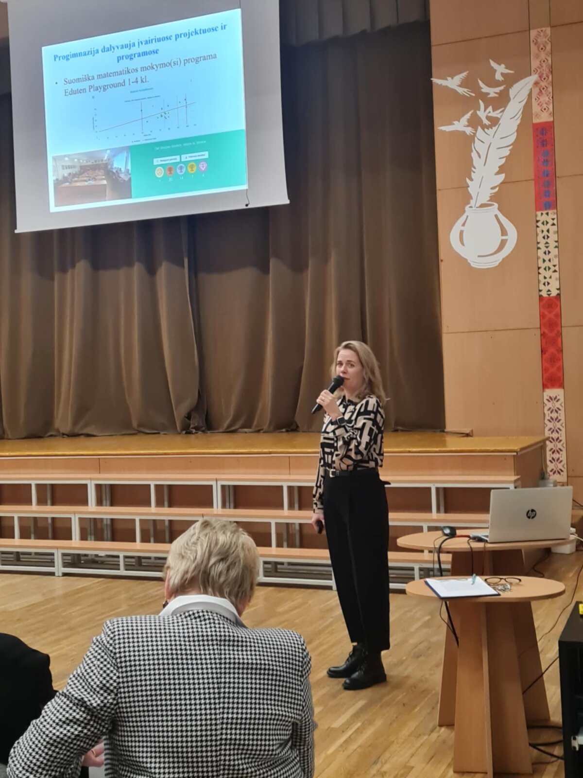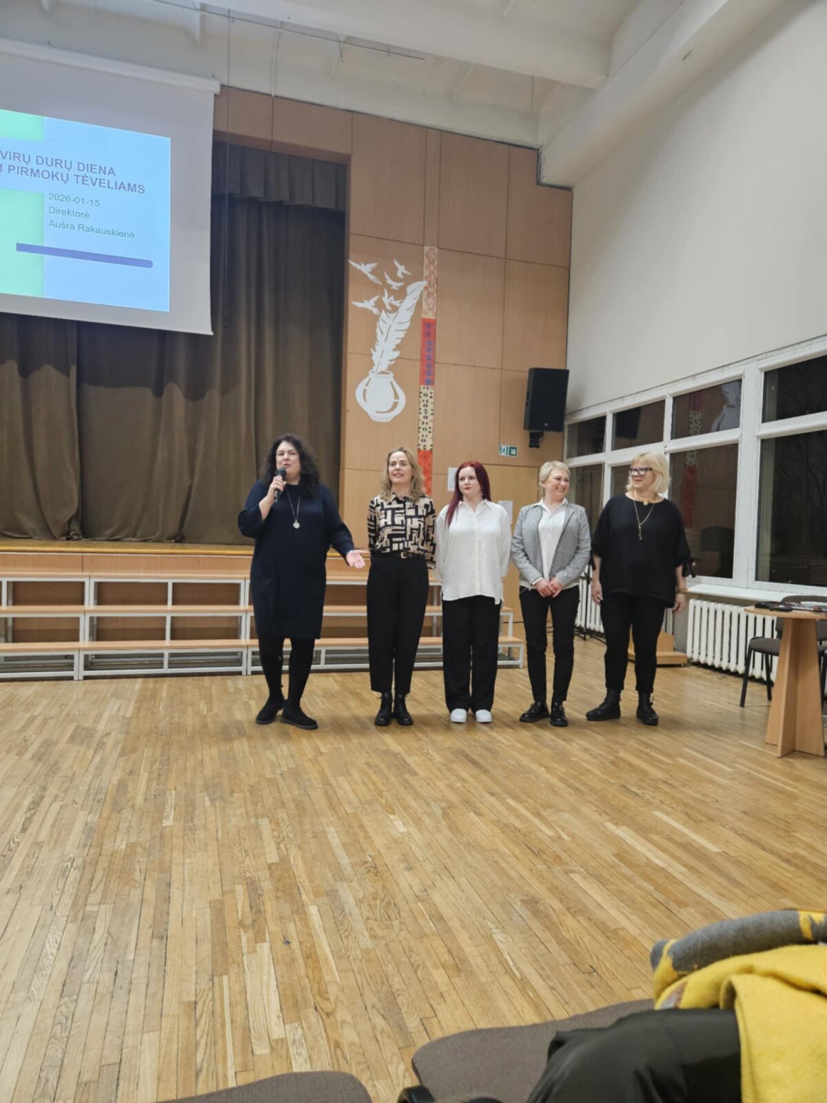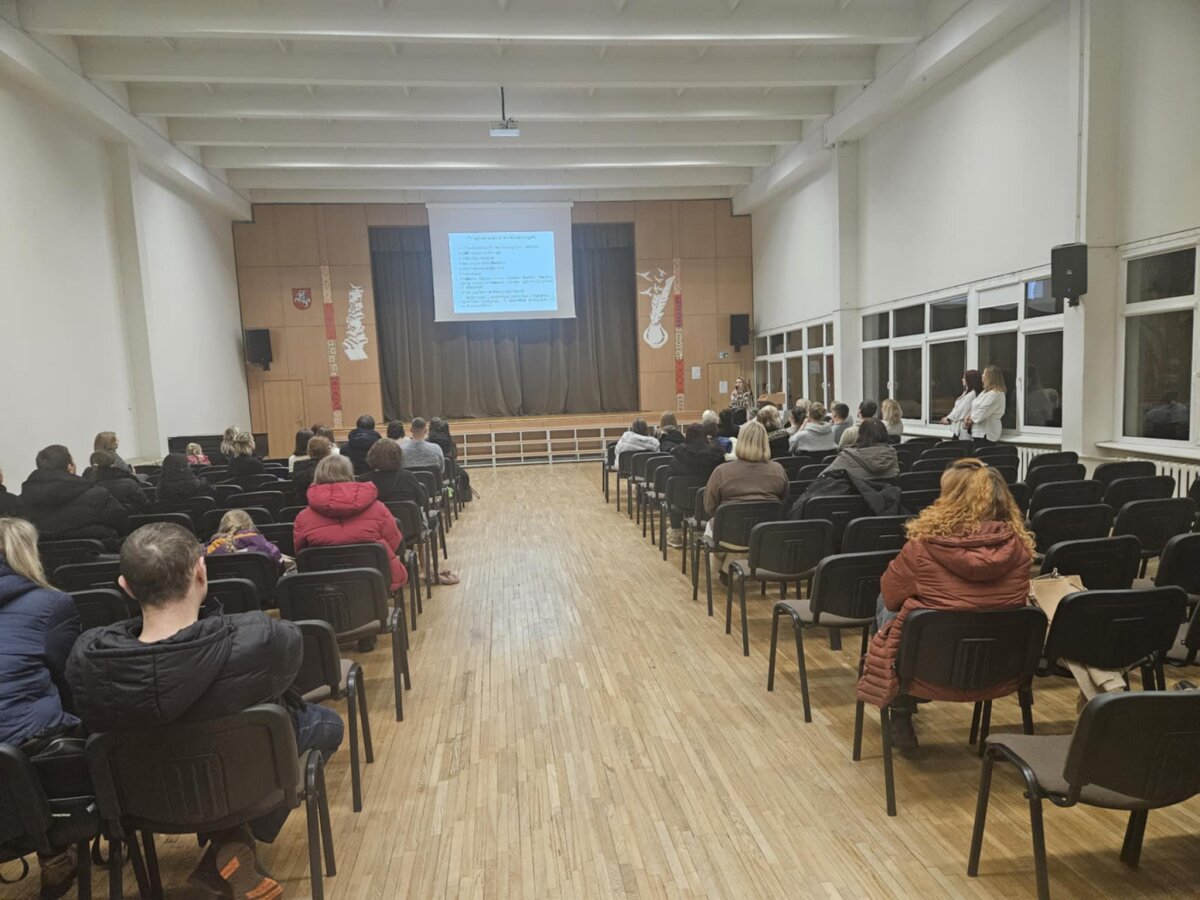 Būsimųjų pirmokų tėvai turėjo galimybę užduoti jiems aktualius ir rūpimus klausimus progimnazijos direktorei Aušrai Rakauskienei bei direktoriaus pavaduotojai ugdymui Aurelijai Kunigėlienei.