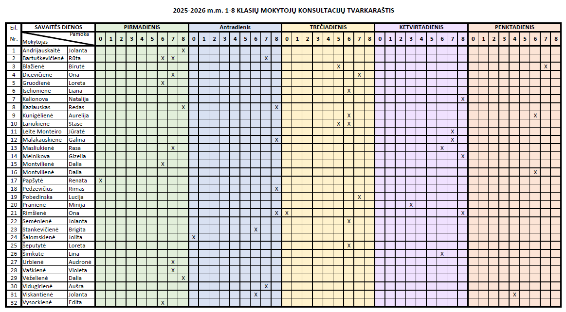 Konsultacijų teikimo tvarkaraštis 2025-2026 m.m.